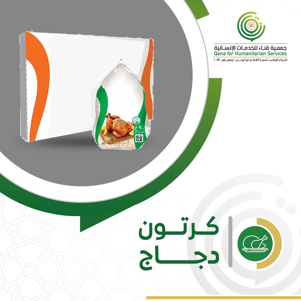إطعام الفقراء كرتون دجاج مع متجر جمعية قناء للخدمات الإنسانية هو مشروع خيري يهدف إلى توفير وجبات غذائية متكاملة للأسر المحتاجة، من خلال توزيع كراتين الدجاج التي تُسهم في سد احتياجاتهم الغذائية وتعزيز الأمن الغذائي لديهم.